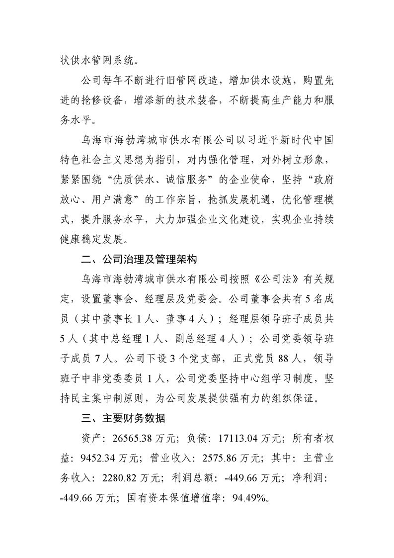 - 2025-03-10烏海市海勃灣城市供水有限公司2024年度信息公開(kāi)報(bào)告