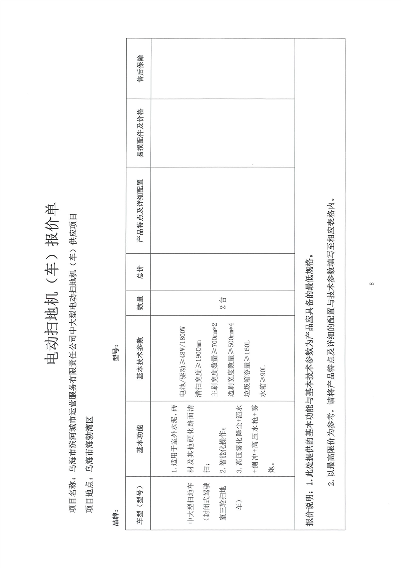 烏海市濱河城市運(yùn)營(yíng)服務(wù)有限責(zé)任公司中大型電動(dòng)掃地機(jī)(車(chē))供應(yīng)項(xiàng)目詢(xún)價(jià)文件