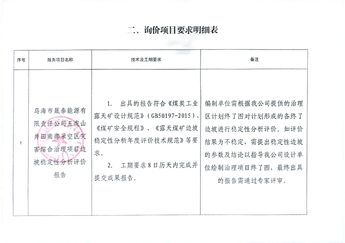烏海市晟泰能源有限責(zé)任公司五虎山井田南部采空區(qū)災(zāi)害綜合治理項(xiàng)目邊坡穩(wěn)定性分析評(píng)價(jià)報(bào)告