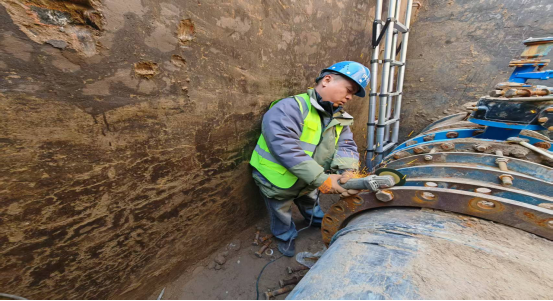 電焊組的師傅們頭戴面罩,手持焊槍,瞬間火花四濺,在黑暗中綻放出奪目光芒,熟練地進(jìn)行切割與焊接工作,其他人員則全力投入到拆卸工作中,他們齊心協(xié)力,將DN800蝶閥、DN800鑄鐵乙管、三通、伸縮器等部件逐一拆卸。盡管汗水濕透了衣衫,雙手被工具磨出了水泡,但沒(méi)有一個(gè)人喊累,所有人的目光都堅(jiān)定地聚焦在搶修任務(wù)上。