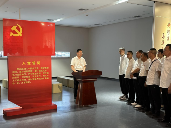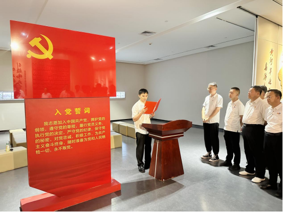 隨后,活動進入政治生日環(huán)節(jié)。在鮮紅的黨旗前,全體黨員神情肅穆,右手握拳高舉,齊聲重溫入黨誓詞:“我志愿加入中國共產黨,擁護黨的綱領,遵守黨的章程……”字字千鈞的錚錚誓言在展廳內激蕩回響,這不僅是黨員們對黨的赤誠告白,更彰顯著他們?yōu)楣伯a主義事業(yè)奮斗終身的堅定信念。新發(fā)展黨員代表走上臺前,以真摯的話語作出莊嚴承諾;最后,黨委書記王海軍發(fā)表《做新時代合格共產黨員》主題寄語,激勵全體黨員在新時代新征程上勇擔使命、砥礪前行。