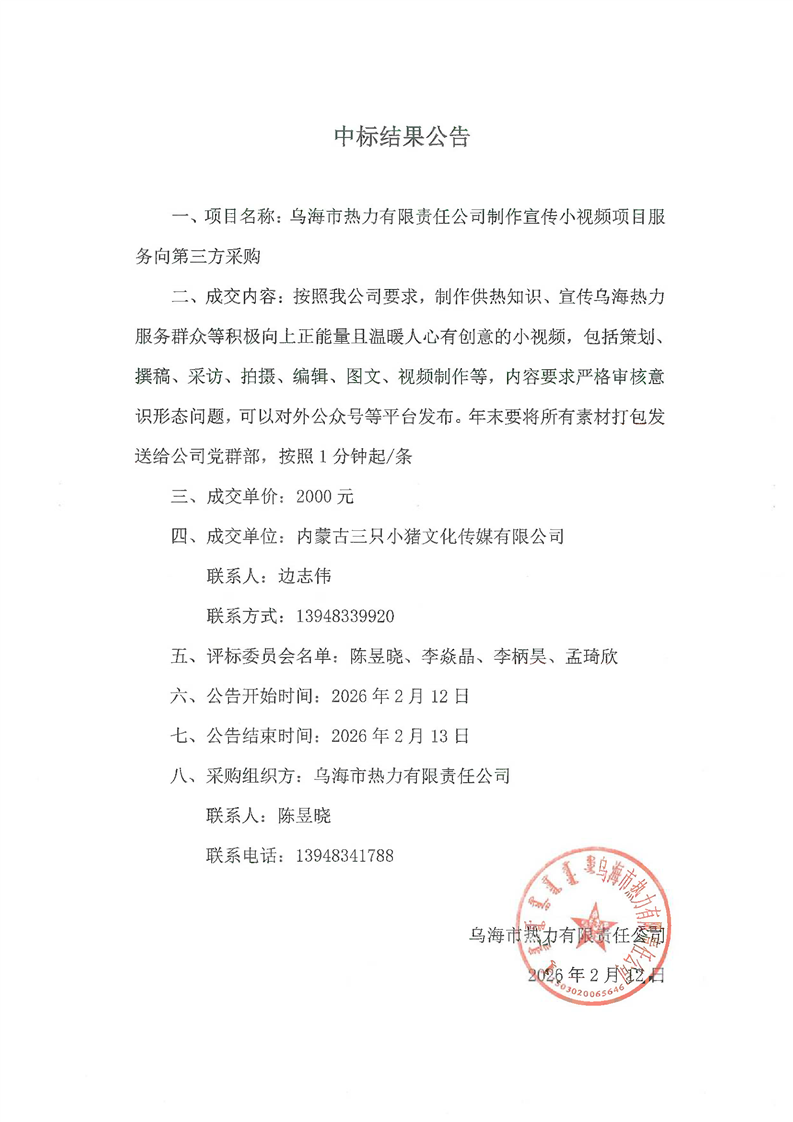- 2026-03-132026年烏海市澤匯園林綠化工程有限公司育花溫室勞務中標(成交)結(jié)果公示