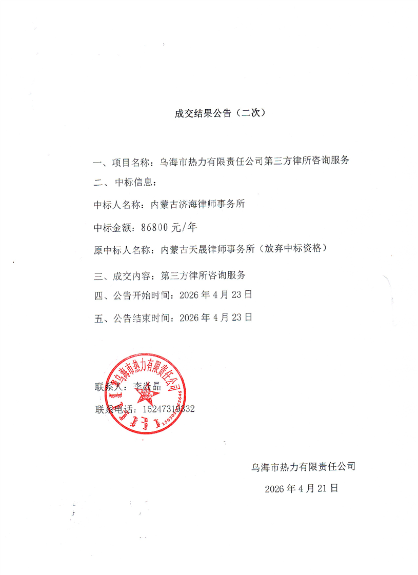 - 2026-04-21烏海市熱力有限責任公司夏季、冬季檢修機械、零次網(wǎng)機械租賃服務(wù)【招標公告】