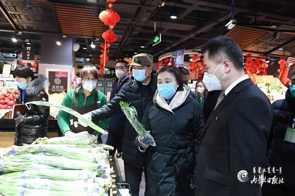 2月3日,自治區(qū)黨委副書記、自治區(qū)主席、自治區(qū)新型冠狀病毒感染肺炎防控工作指揮部總指揮布小林在包頭市王府井超市查看物品供應(yīng)、價(jià)格、貨源保障等情況。